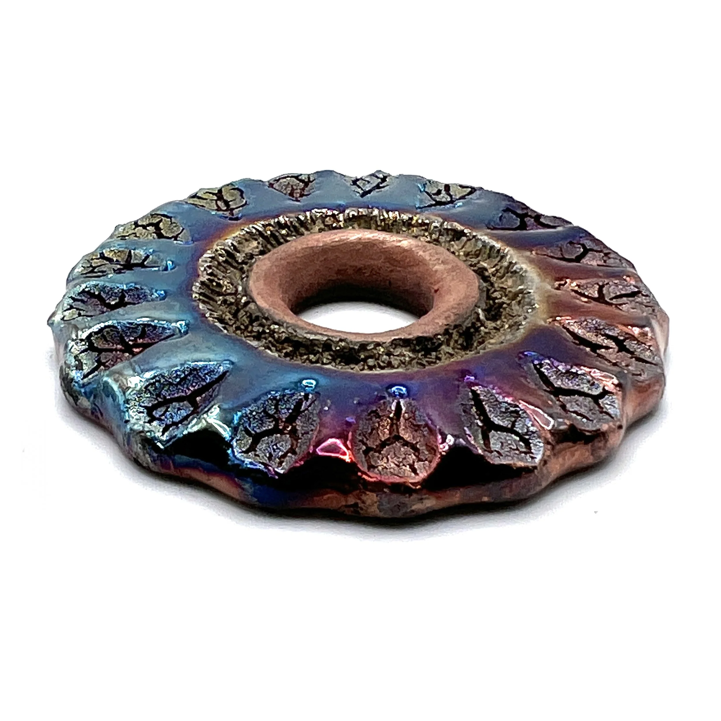 Use this funky handmade raku cabochon donut in your next jewelry design. Great for bead embroidery and metal smithing! Or, simply glue on a bail or tie on a ribbon!